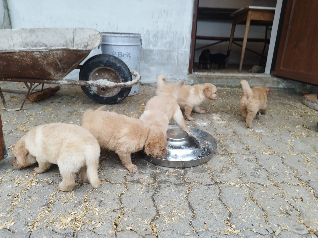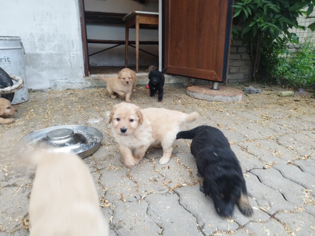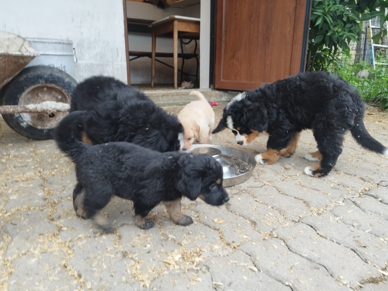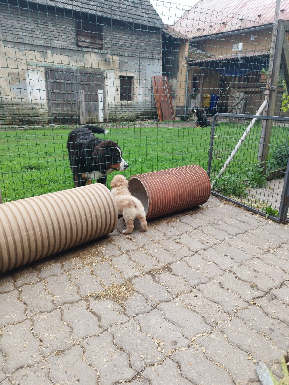 Štěňátka z vrhu D oslavila 4 týdny a odstěhovala se do velkého výběhu. Zde mají spoustu nových podnětů a o měsíc větší kamarády berňáky ze spřátelené CHS Queen Elsa a Bohemia Bernica u kterých probíhá náš odchov malých hovawartíků.
