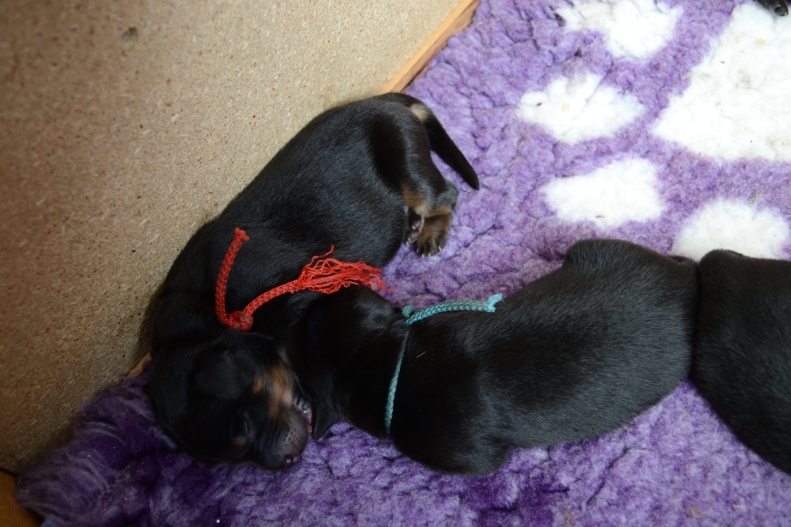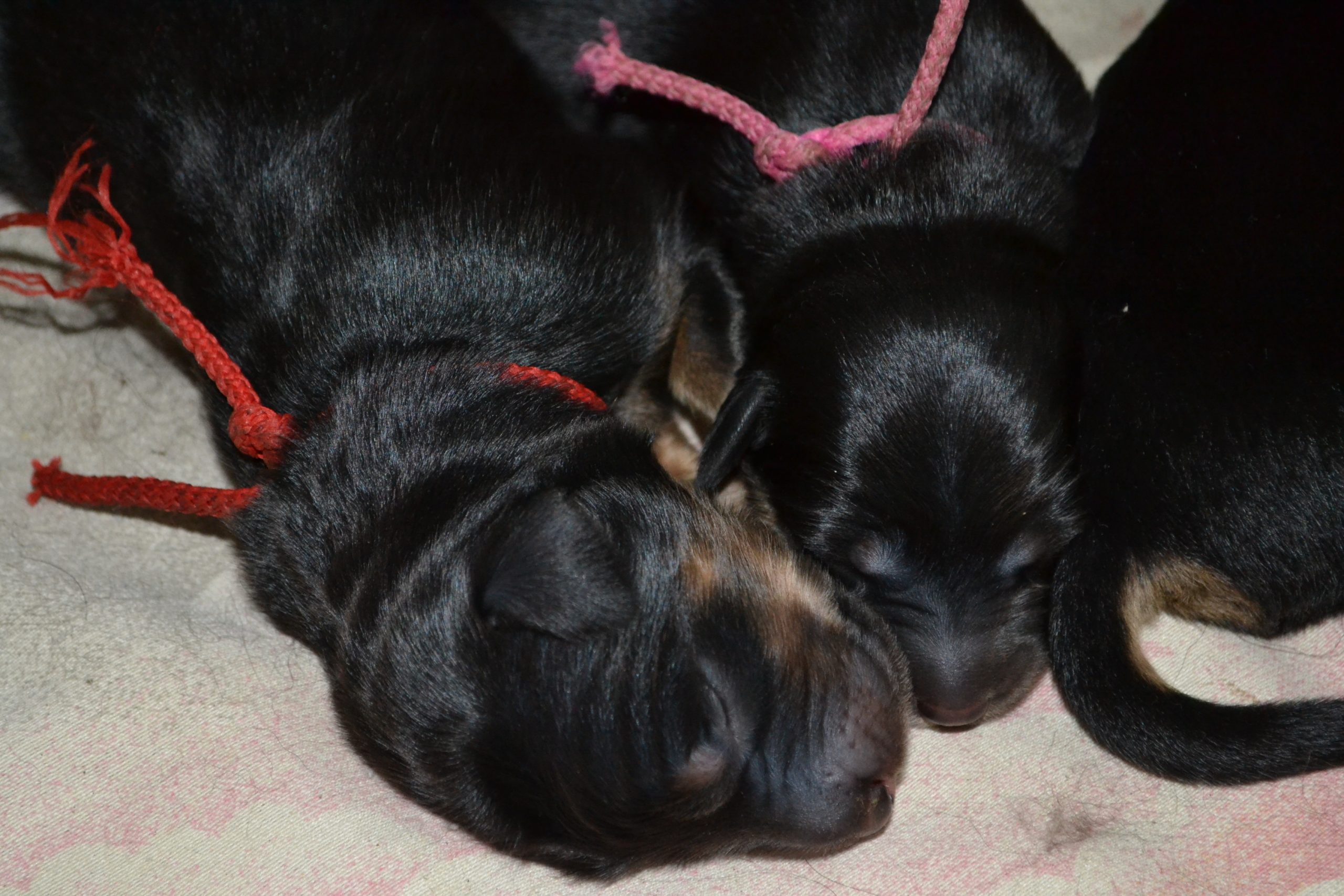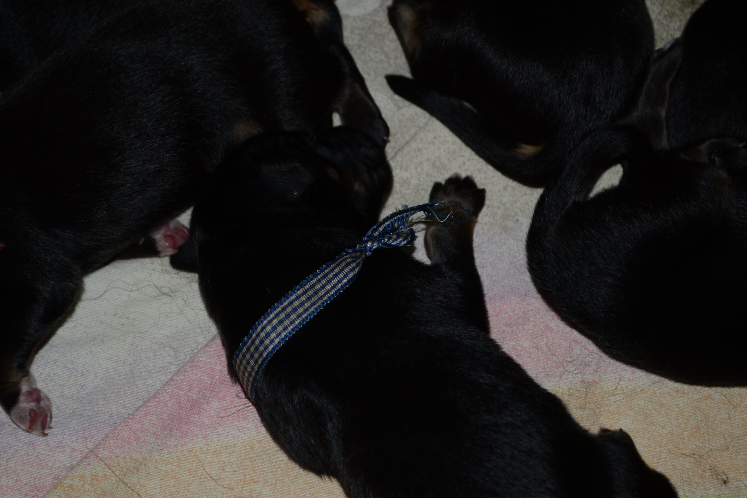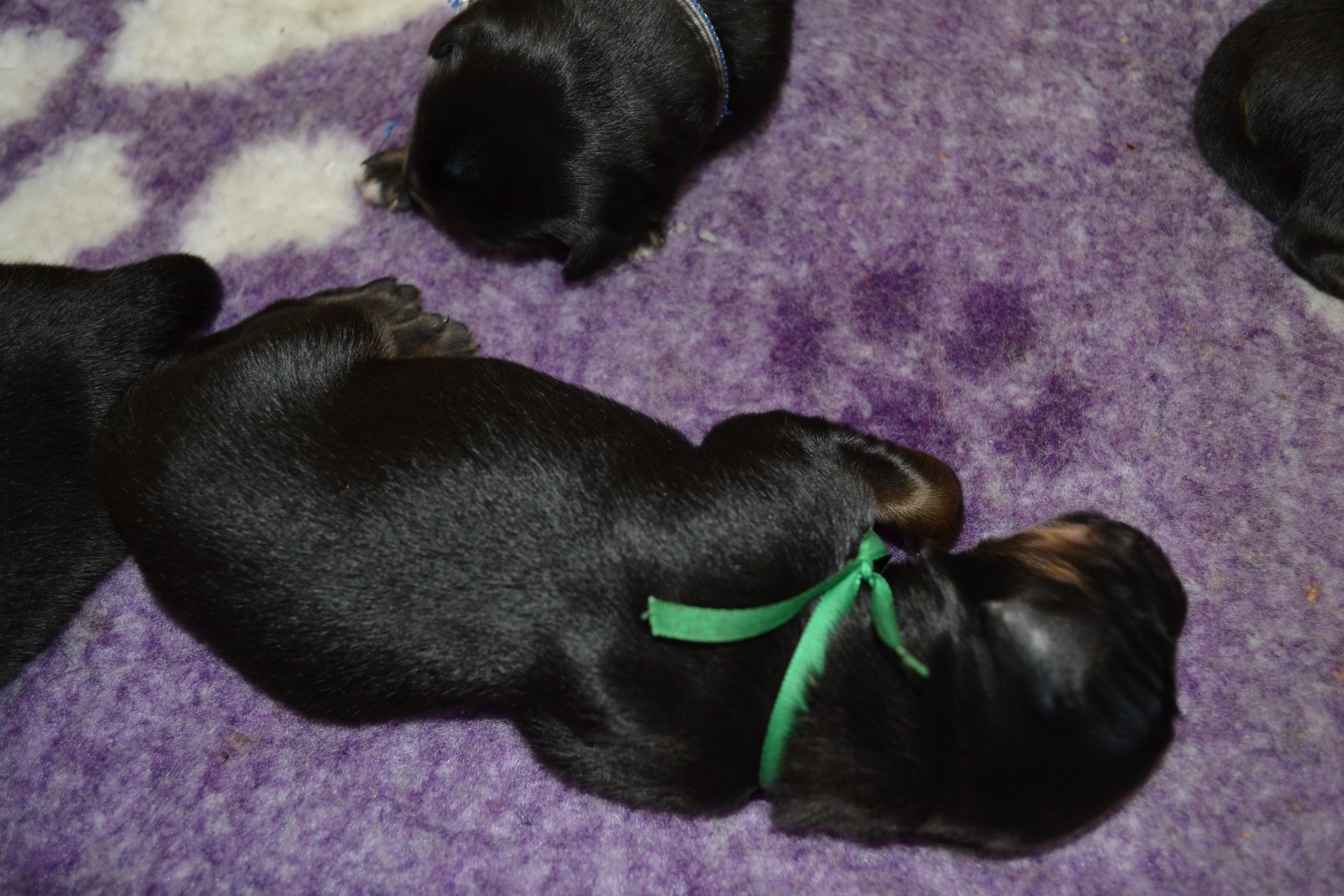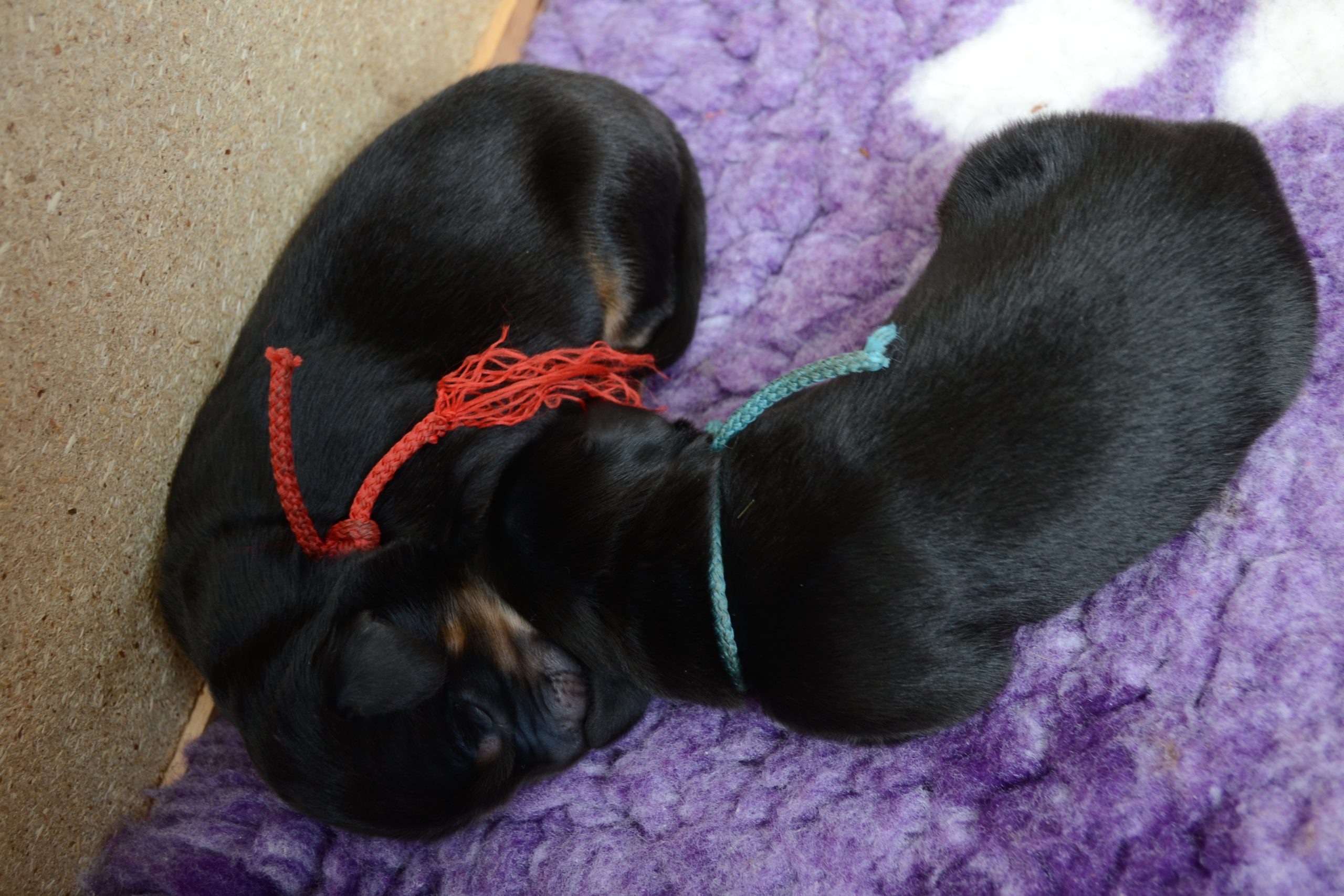 Naše štěňátka z vrhu B za sebou mají již 2 dny života. Pilně se krmí a spinkají, aby nám vždy večer mohla říct o kolik zase vyrostla. Včera to bylo kolem 40g, dneska již kolem 60g. Všechna štěňátka vrhu B tak pokořila hranici půl kila.