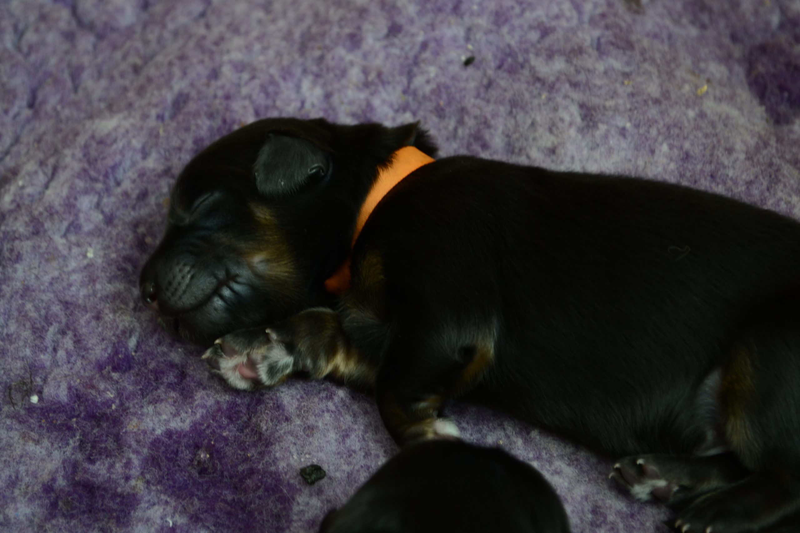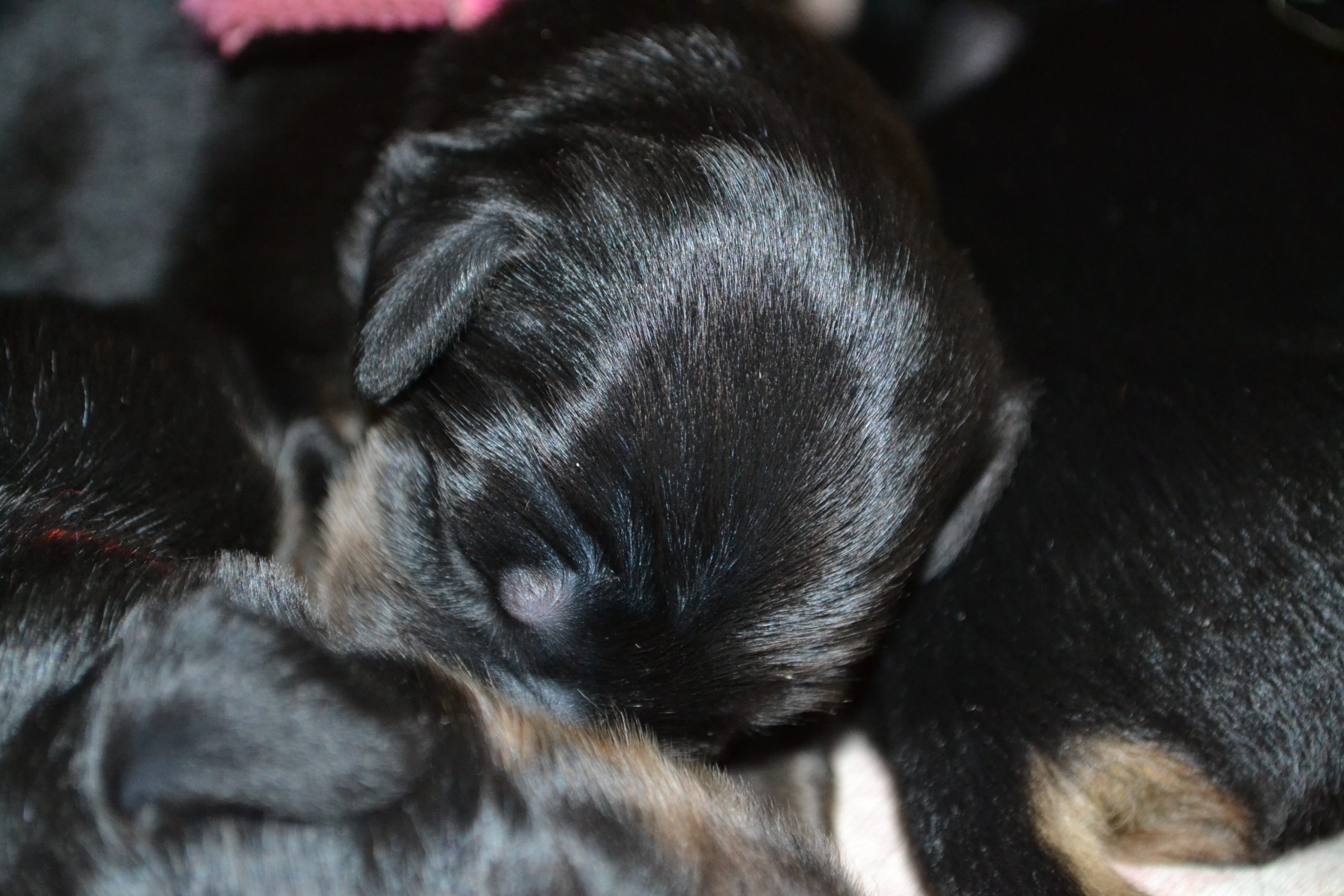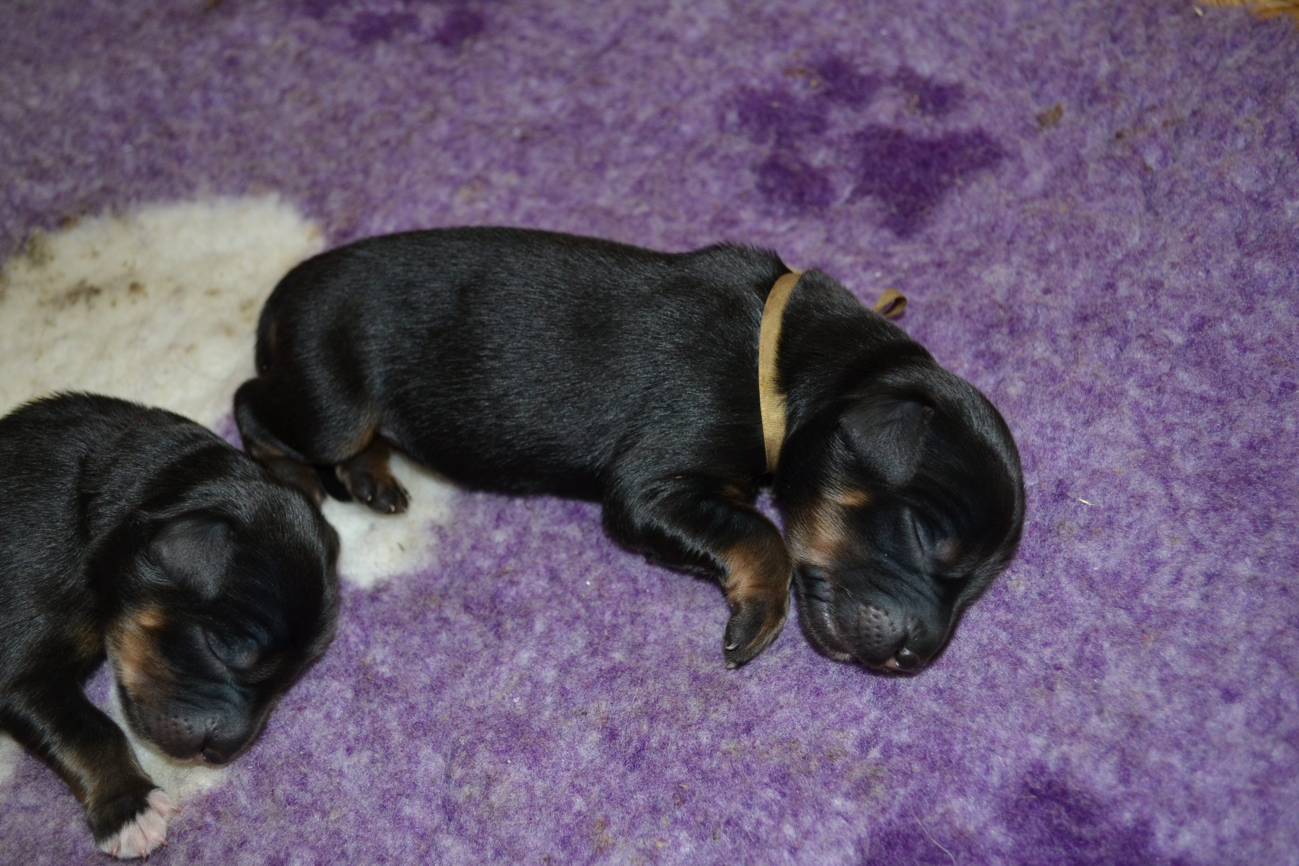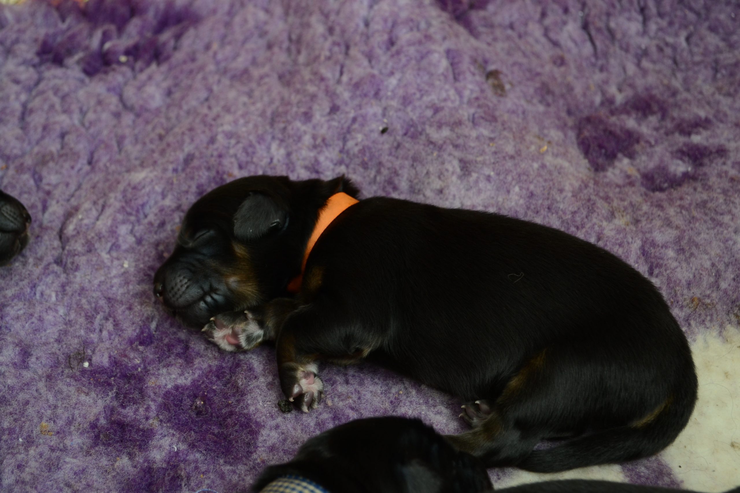 Naše štěňátka z vrhu B za sebou mají již 2 dny života. Pilně se krmí a spinkají, aby nám vždy večer mohla říct o kolik zase vyrostla. Včera to bylo kolem 40g, dneska již kolem 60g. Všechna štěňátka vrhu B tak pokořila hranici půl kila.