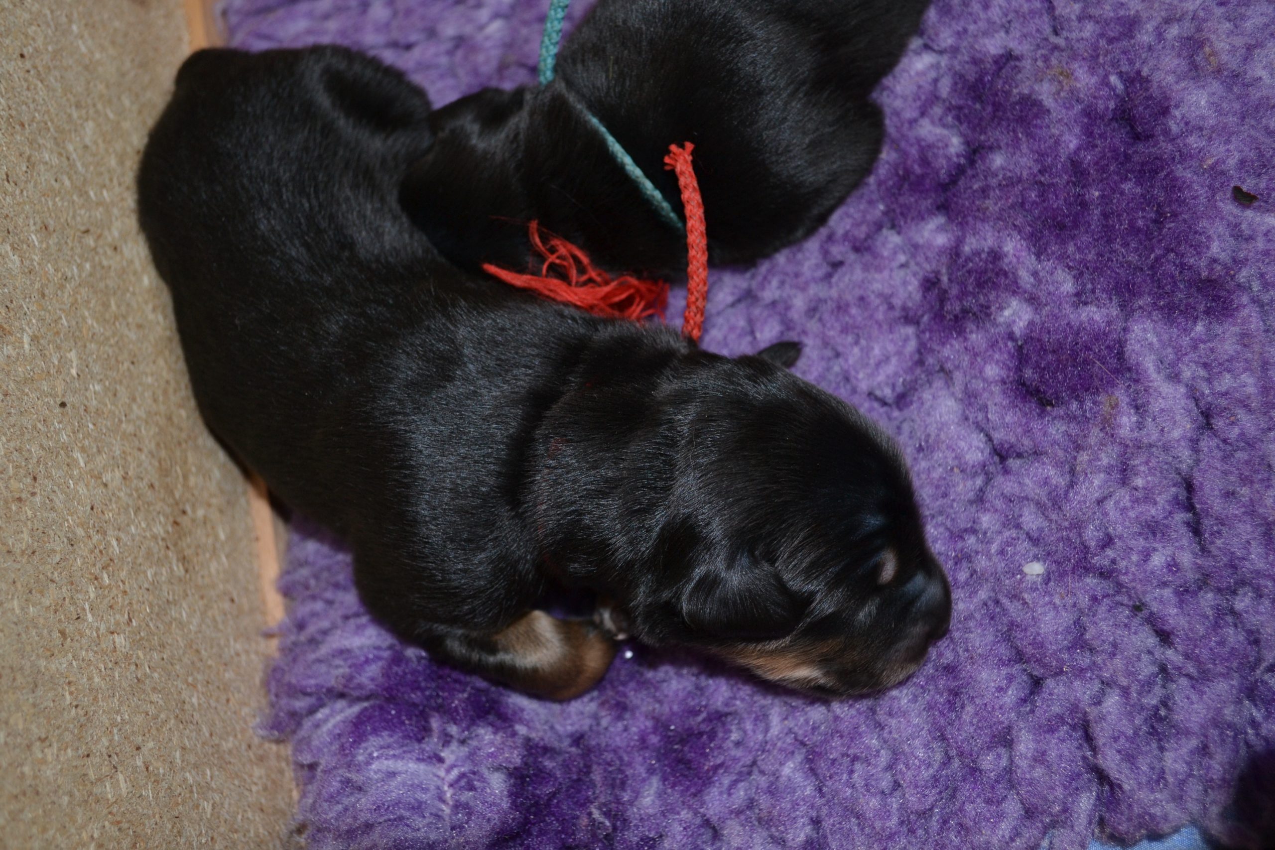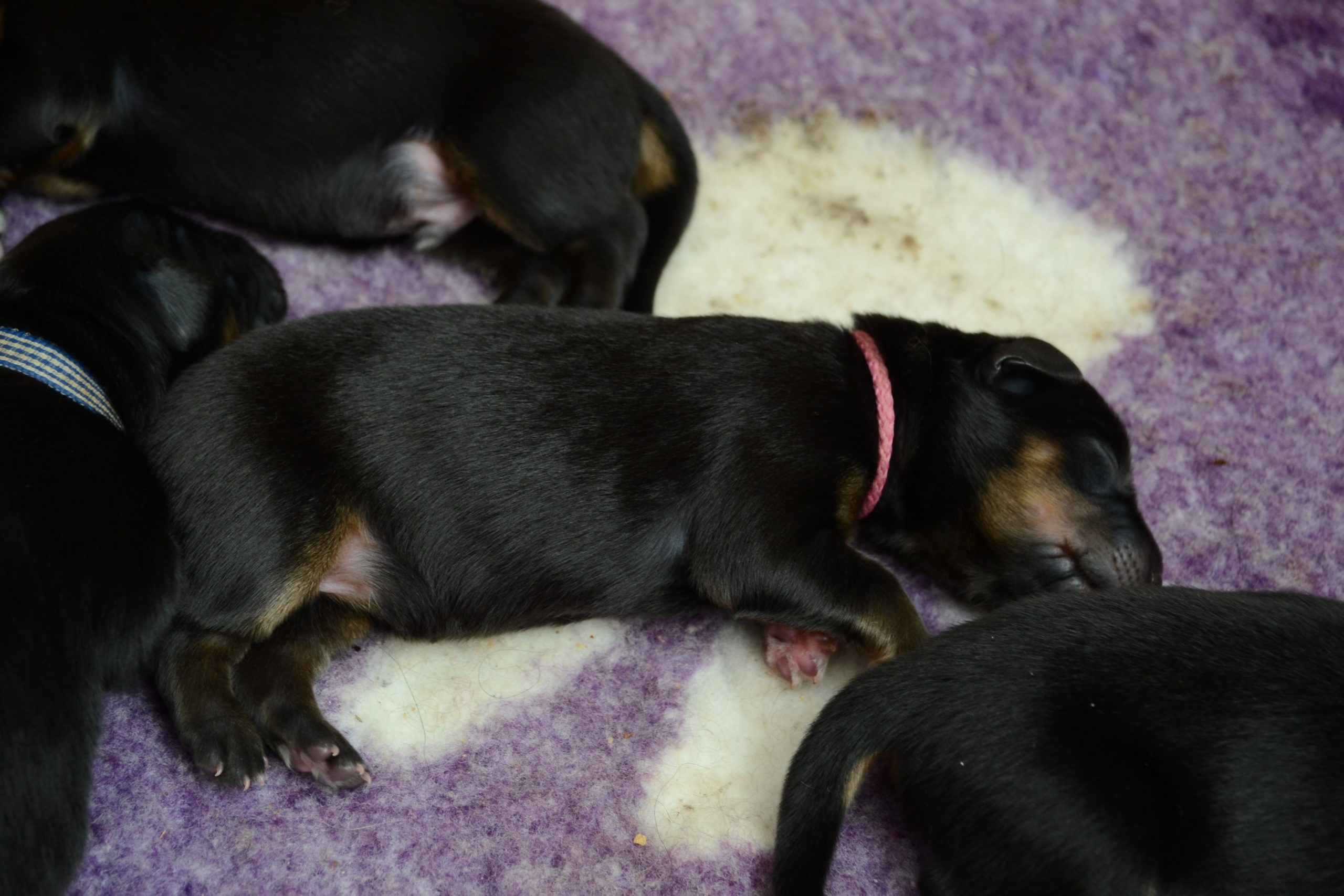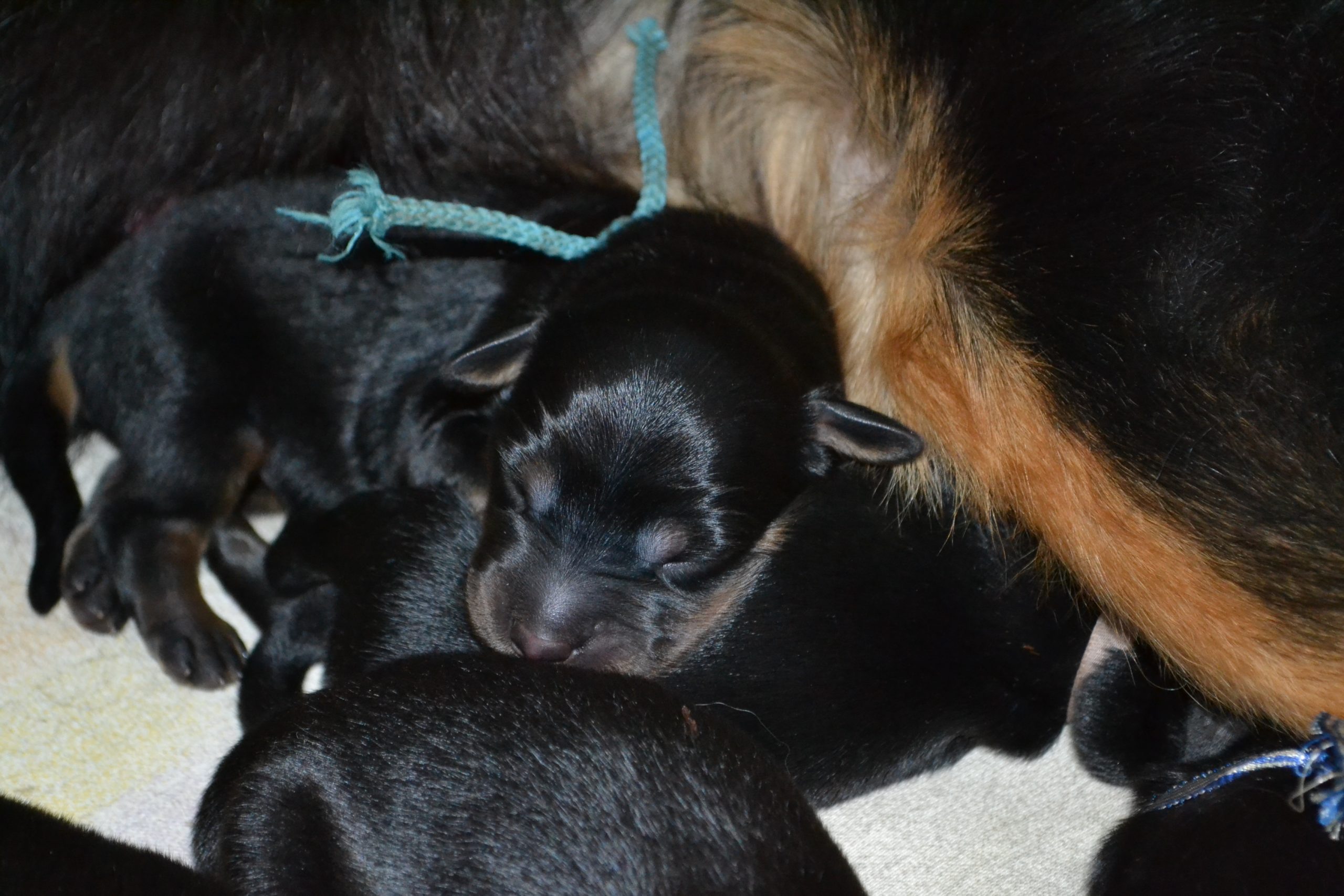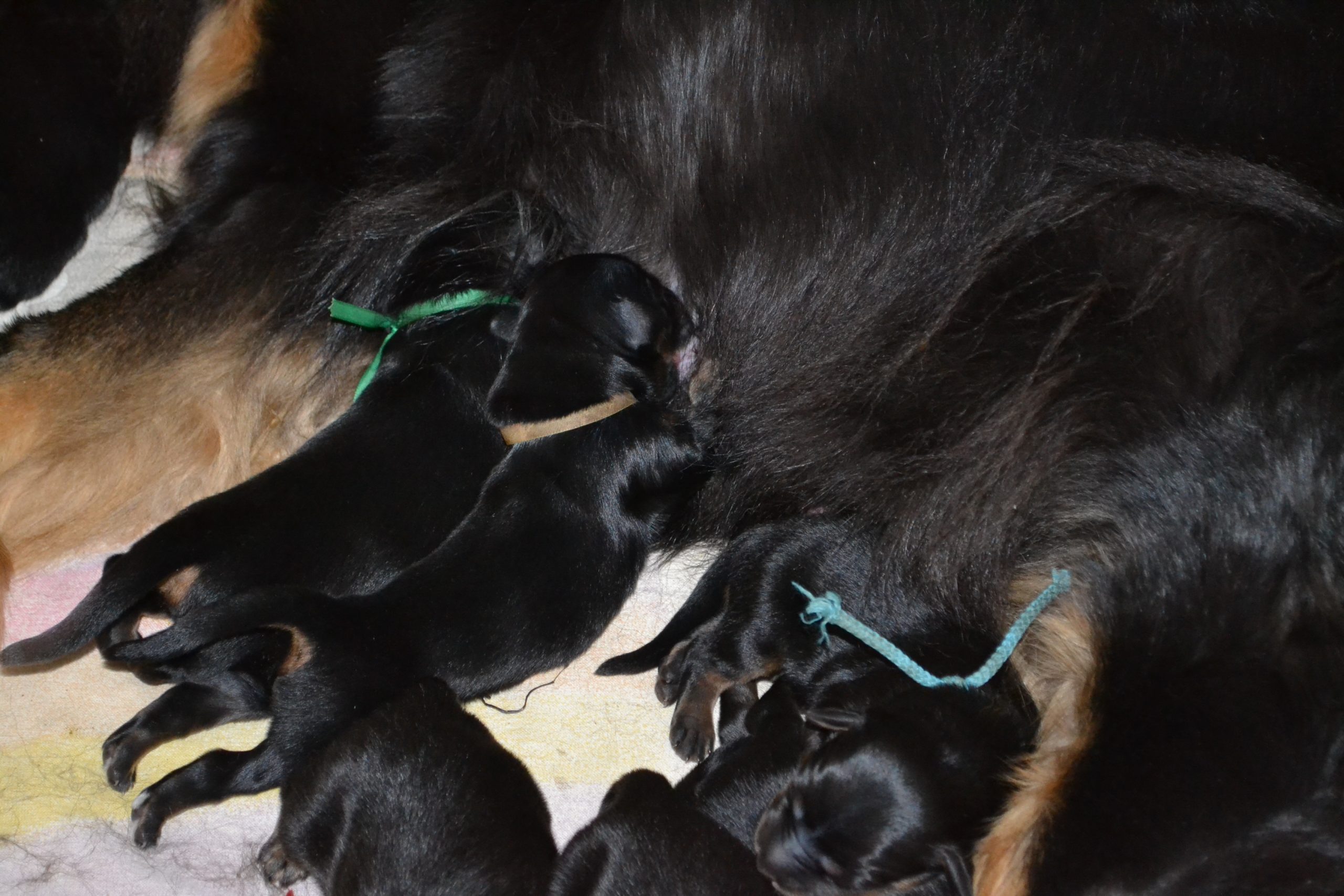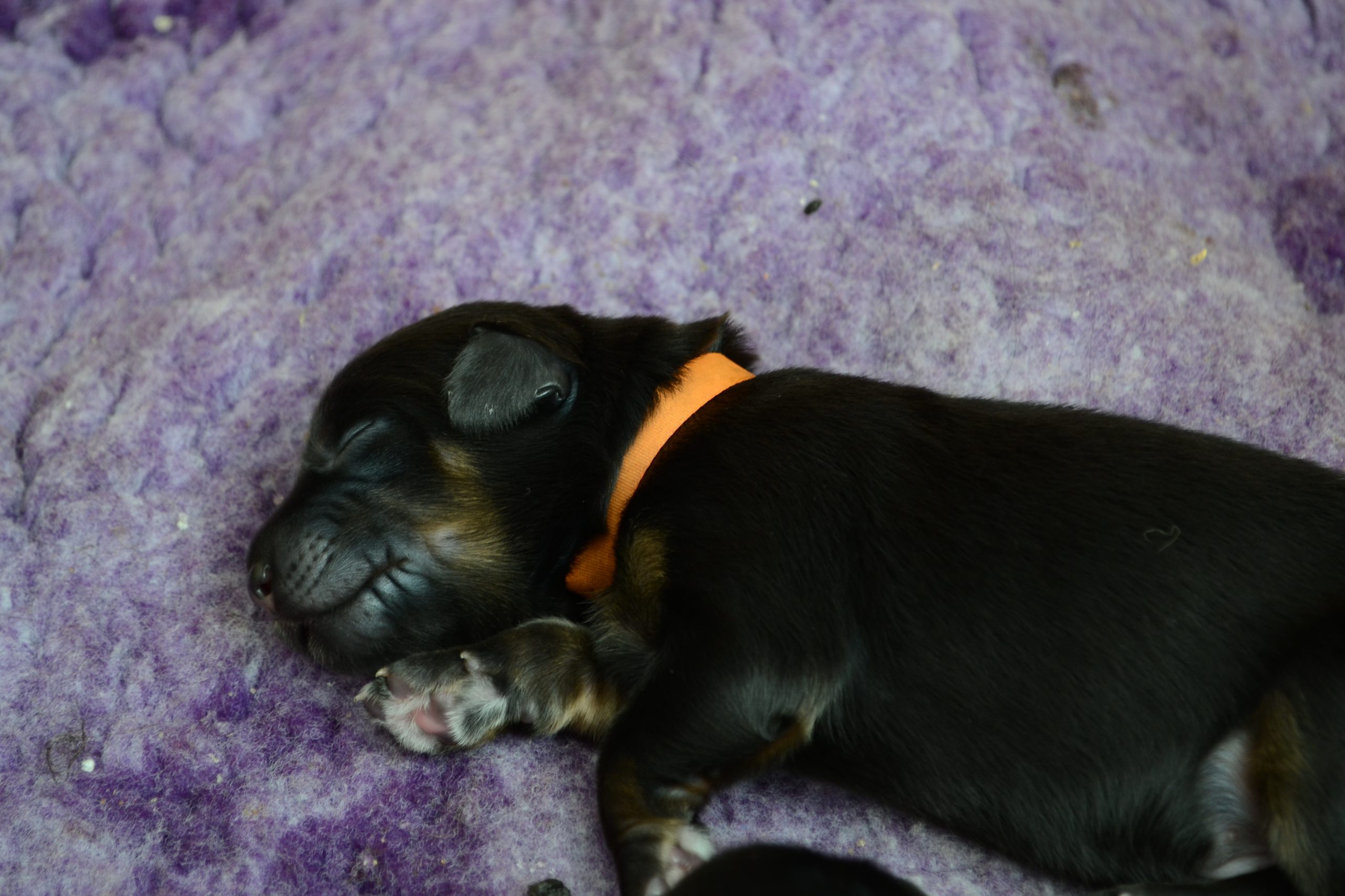 Naše štěňátka z vrhu B za sebou mají již 2 dny života. Pilně se krmí a spinkají, aby nám vždy večer mohla říct o kolik zase vyrostla. Včera to bylo kolem 40g, dneska již kolem 60g. Všechna štěňátka vrhu B tak pokořila hranici půl kila.