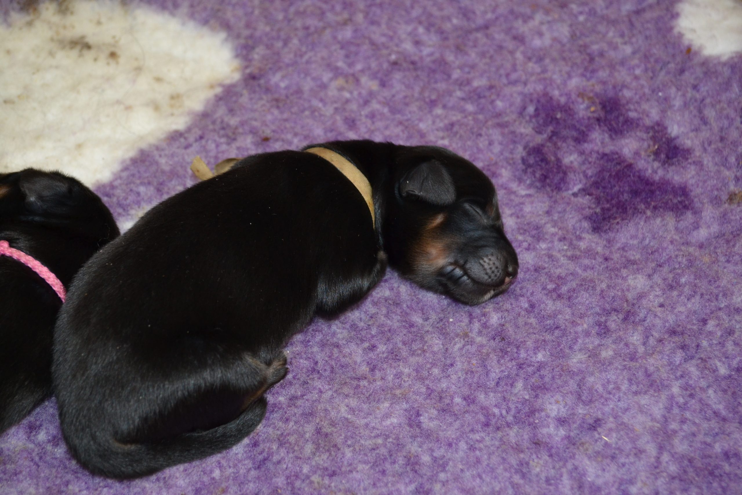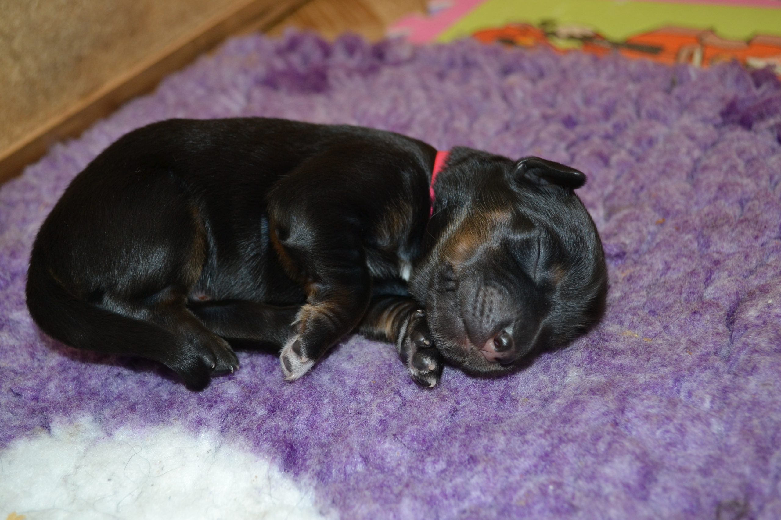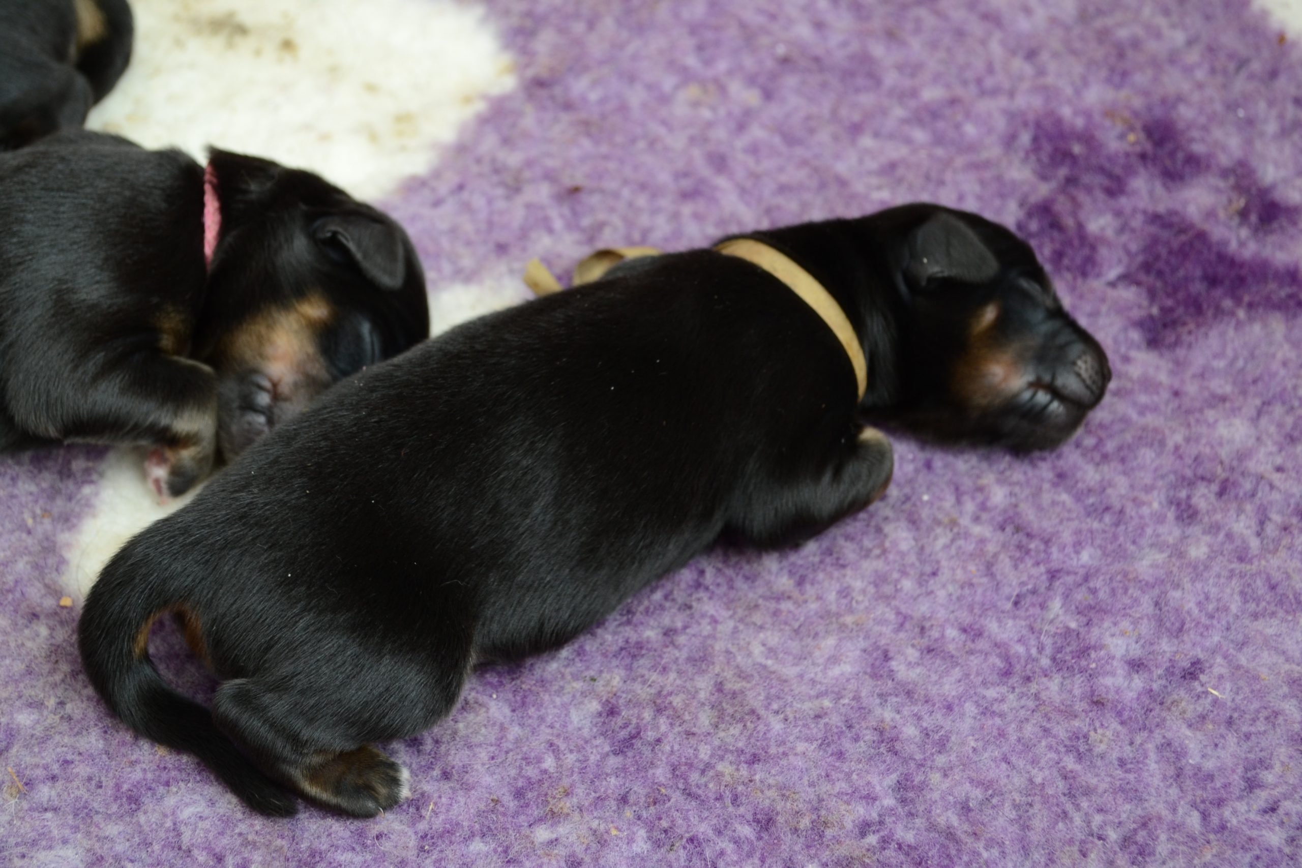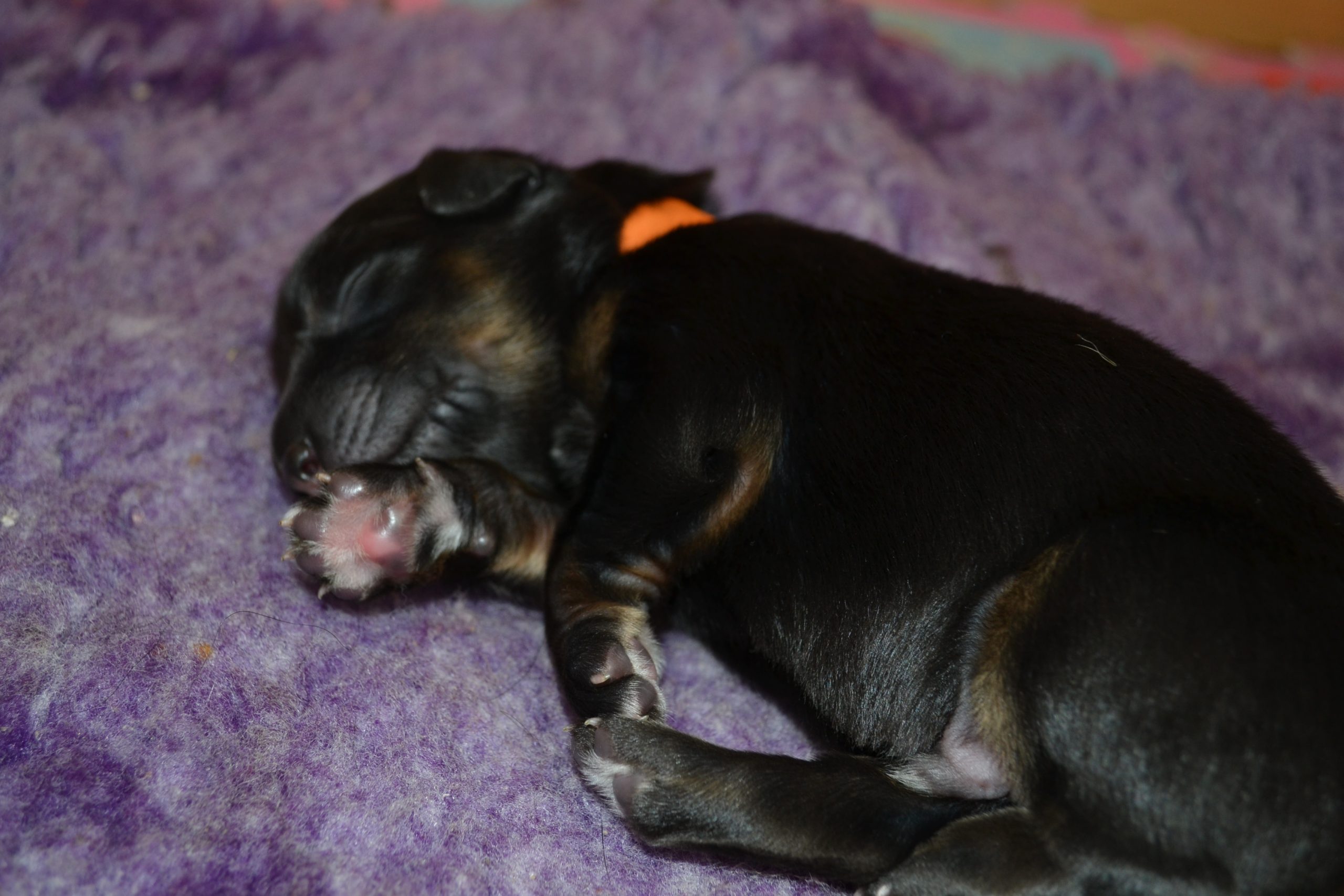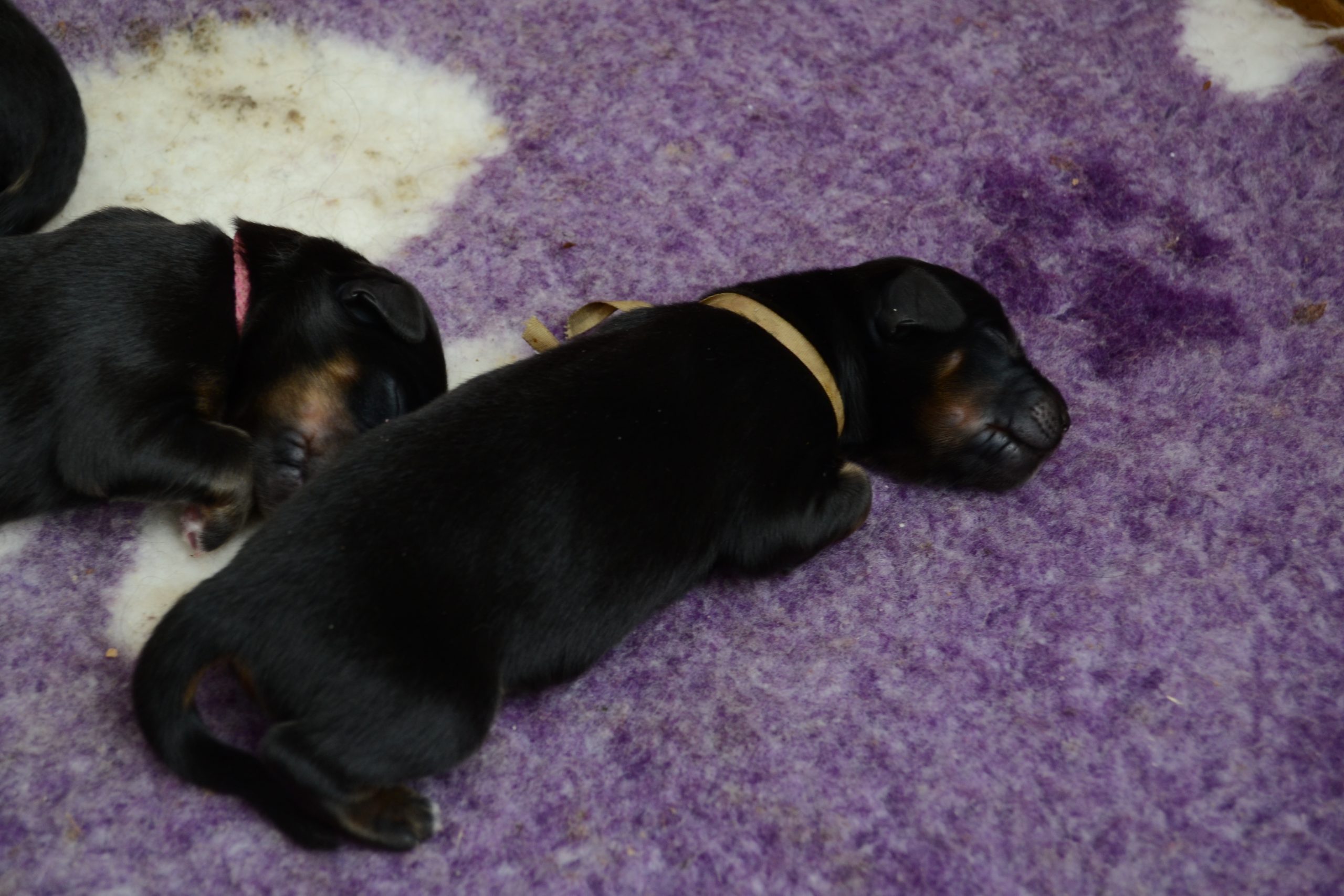 Naše štěňátka z vrhu B za sebou mají již 2 dny života. Pilně se krmí a spinkají, aby nám vždy večer mohla říct o kolik zase vyrostla. Včera to bylo kolem 40g, dneska již kolem 60g. Všechna štěňátka vrhu B tak pokořila hranici půl kila.