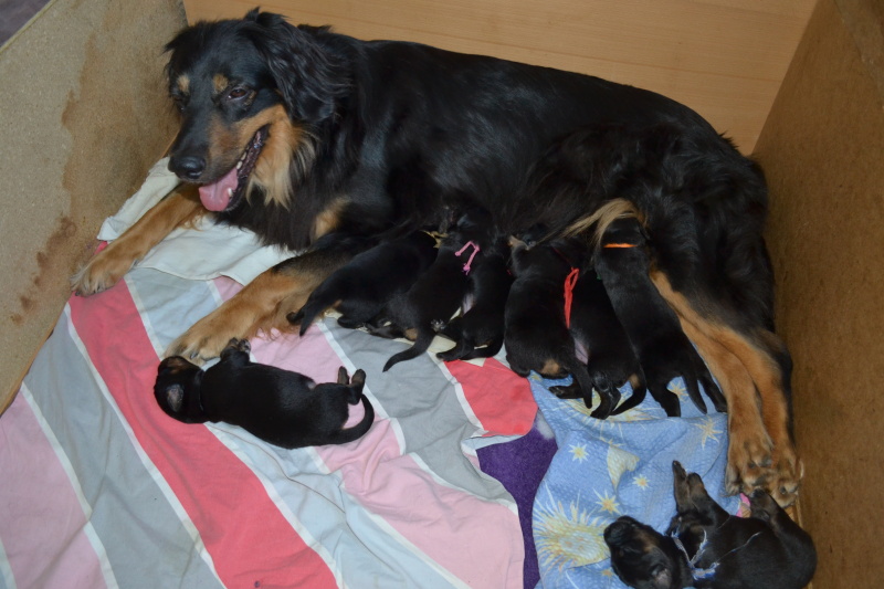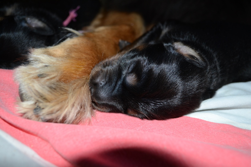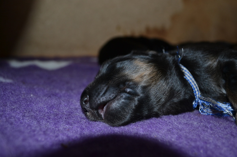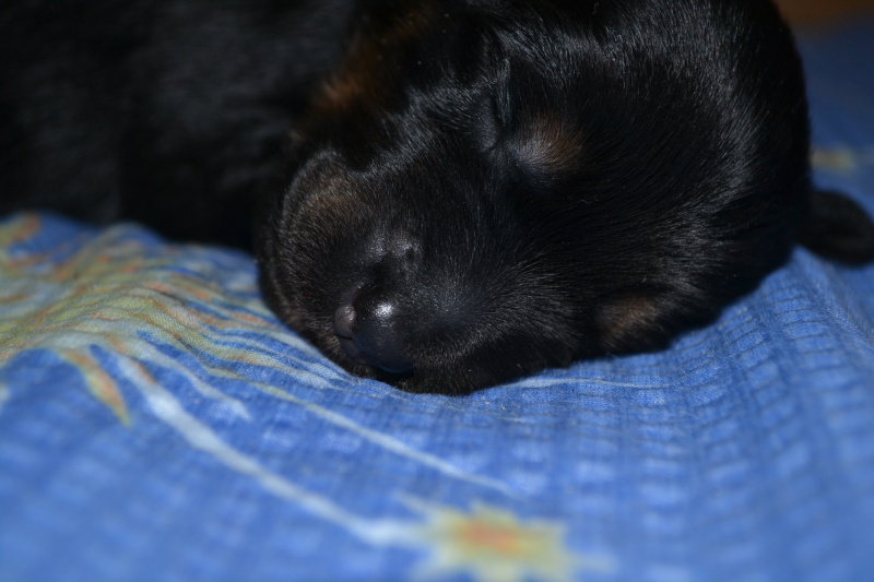 Štěňátka rostou jako z vody, dnes tedy 10. den co jsou na světě začala otevírat očička, aby se podívala co je na tom světě čeká. Začínají se pomalinku stavět na vratké nožičky a pokouší se o chůzi, zatím ve formě různých karambolů, pádů a kutálení se, občas se někomu povede udělat krůček či dva.