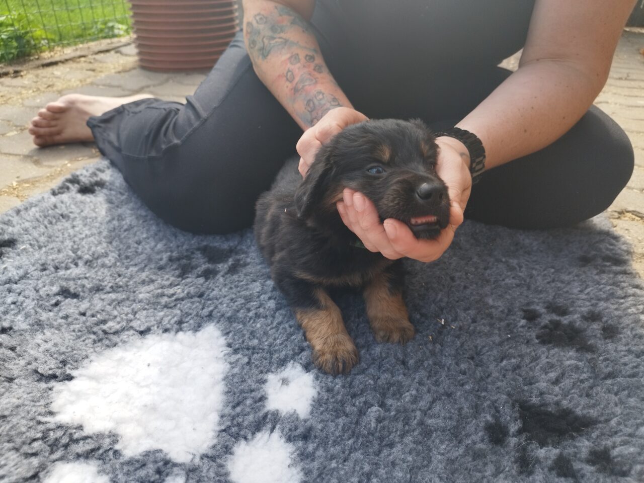 Dea- černá holčička, trošku dračice, jako jediná měla jméno již od narození na pamaátku naší úžasné Deušky. Jméno Dea znamená bohyně/ božská a věříme, že Deuška přesně tohle splní.